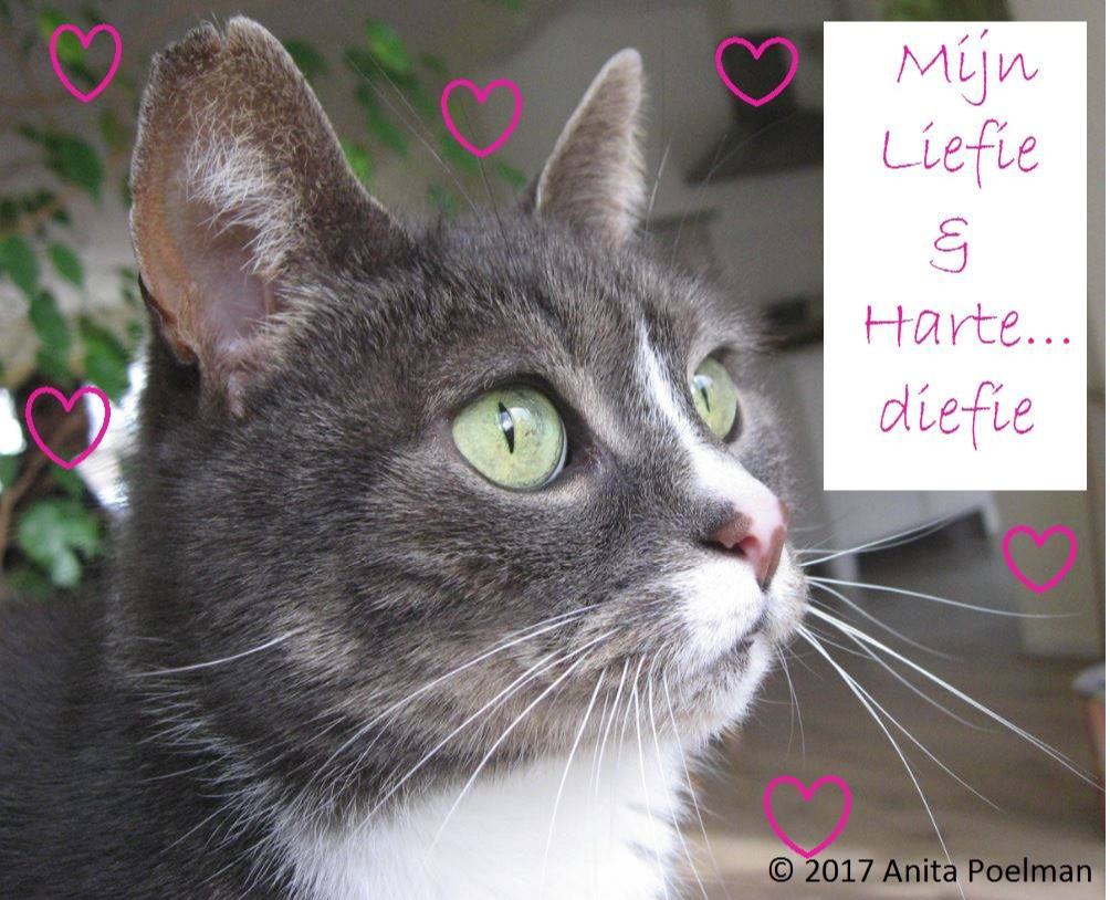 Weken voor het laatste afscheid van de honden, liep er een poesje rond het huis. Ik had een krat met dekentje en beschutting neergezet. En ze kreeg eten. Het was zomer, en in die weken kwam ze regelmatig spontaan bovenop mijn hart liggen, als ik even lag te rusten in de tuin. Het was een zware periode, de dieren waren heel ziek en hadden 24/7 verzorging nodig.